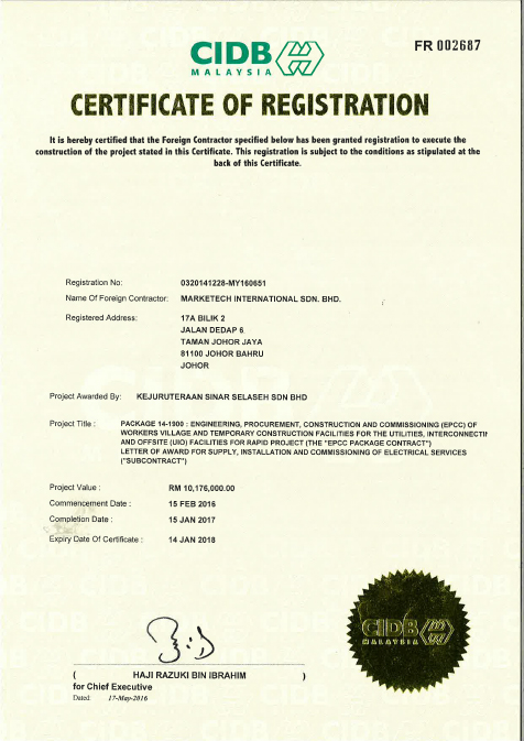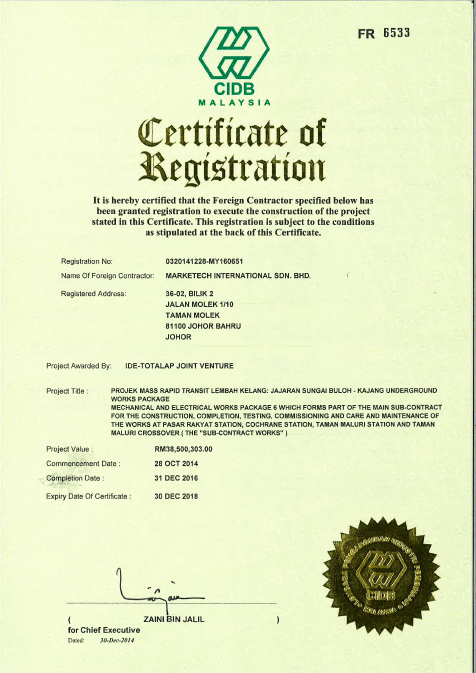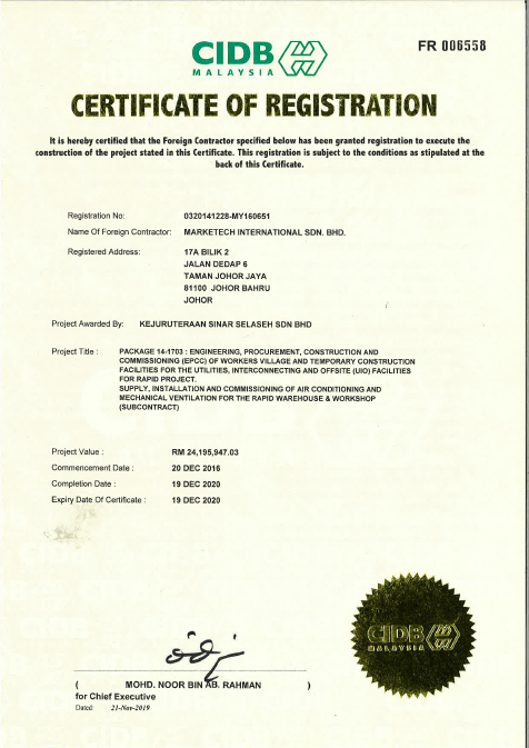 Our certification proudly reflects our commitment to excellence in two vital sectors, which CIDB for our construction business and CARE for our medical devices: